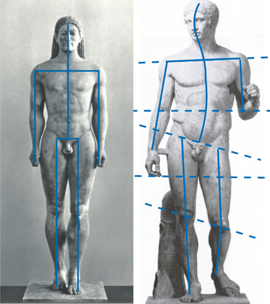 Die Figuren wurden natürlicher dargestellt. Die Bildhauer betrachteten den Aufbau der Muskeln und die Form der Knochen unter der Haut; sie nutzten ihre Beobachtungen, um die Statuen lebensnäher, aber geschönt zu gestalten. Dies wird Idealisierung genannt.