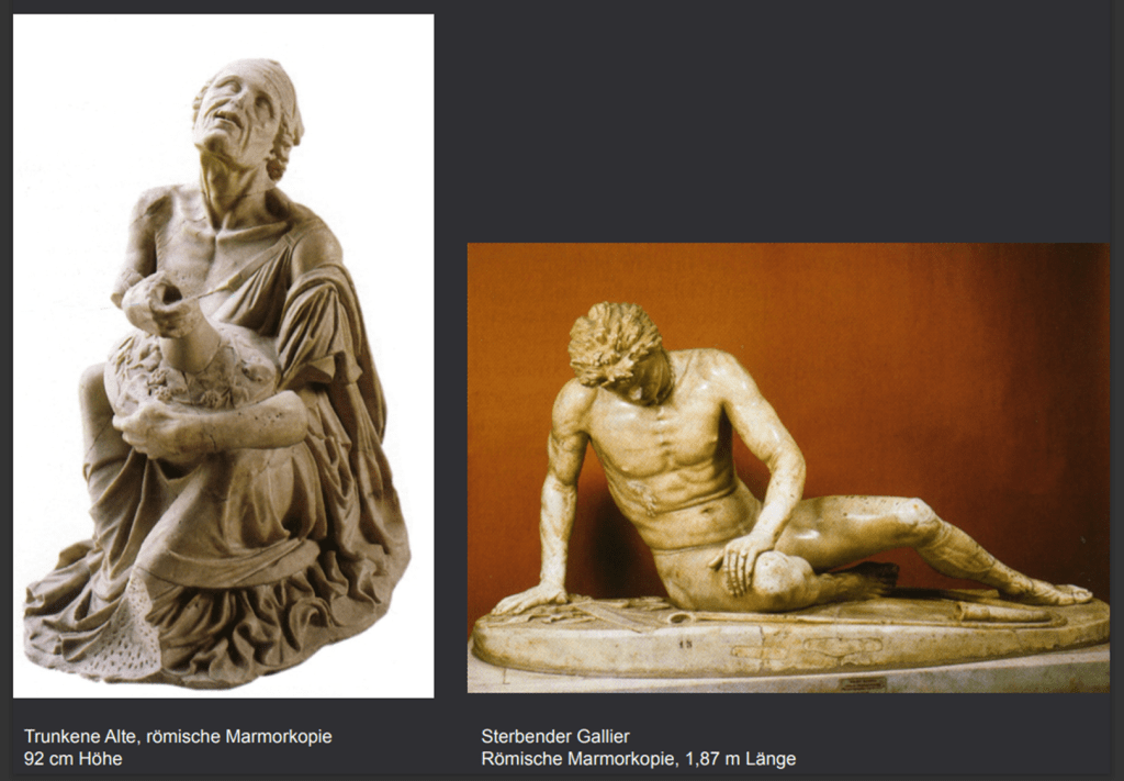 Der Niedergang des griechischen Reiches führte dazu, dass viele Originale der griechischen Kunst zerstört wurden, sei es durch den Verfall der Zeit, Zerstörungen durch Kriege, Eroberungen und Vandalismus oder das aufkommende Christentum. Heute kennen wir die Kunst der Griechen hauptsächlich durch die Kopien, die von den Römern angefertigt wurden.