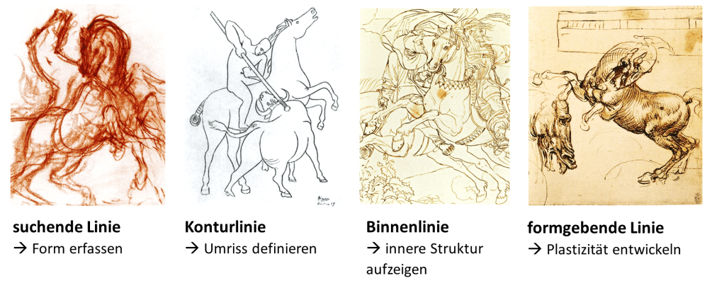 Neben den meist klar gesetzten Kontur- und Binnenlinien gibt es die materialangebenden Linien.