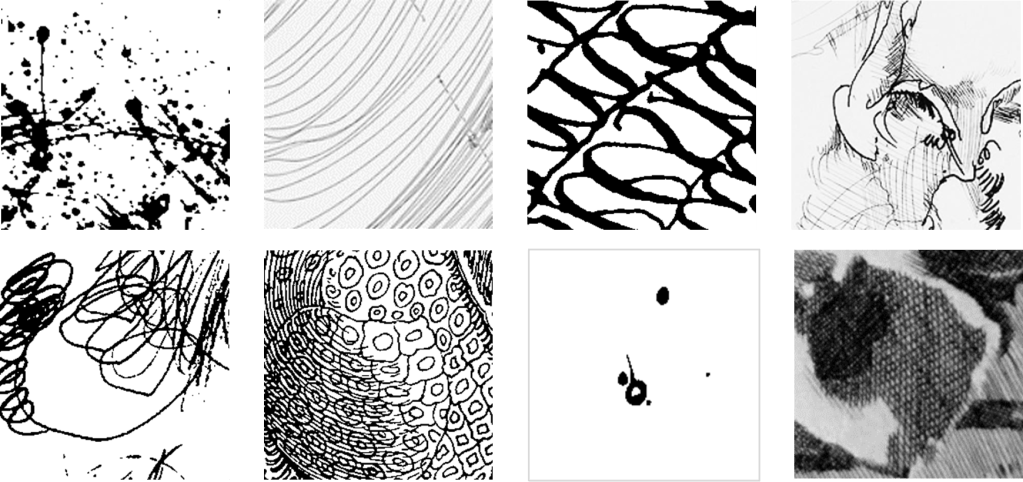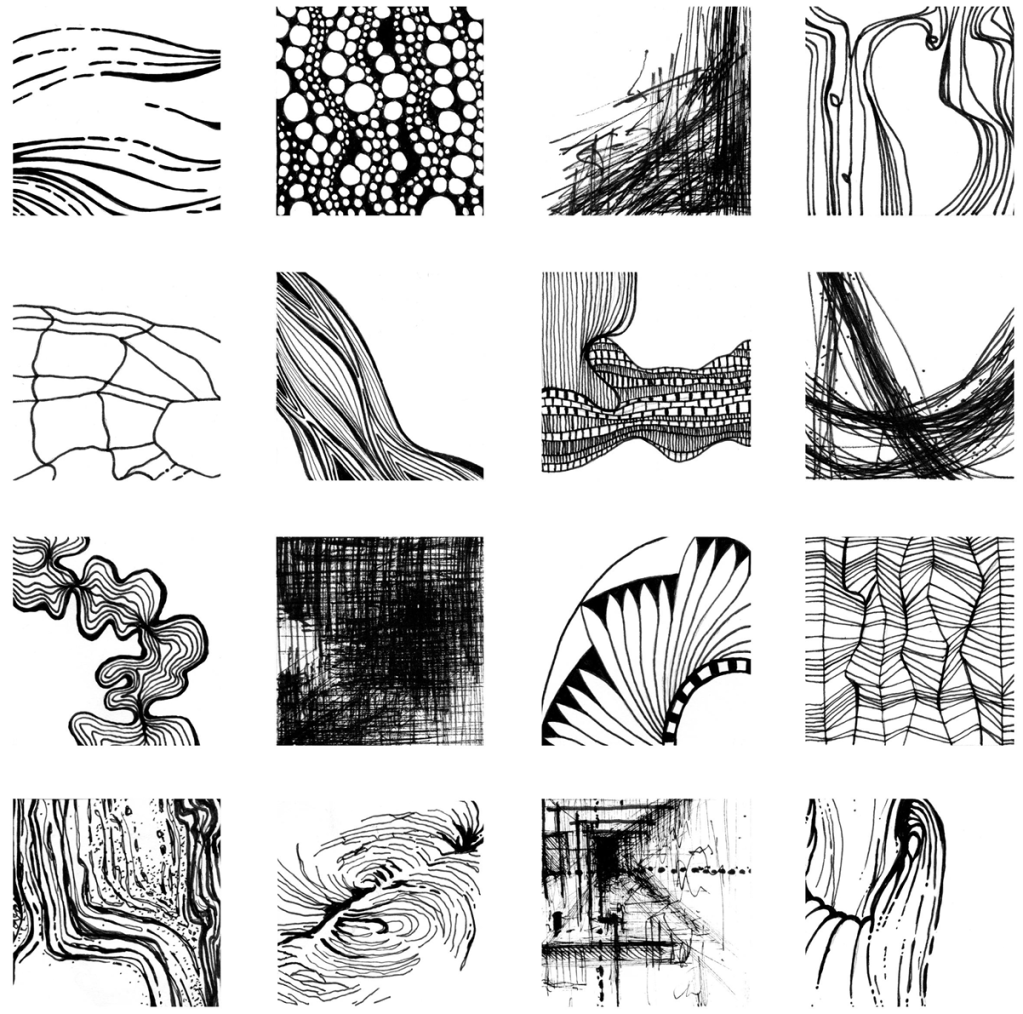 Meist werden Linien verdichtet, um die Textur zu charakterisieren. Für Zeichner ist es besonders herausfordernd, grafische Entsprechungen für die unterschiedlichen haptischen Qualitäten zu entwickeln.