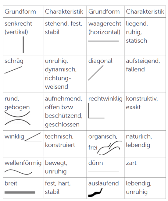 Schon einfachste Linien rufen bei ihrer Betrachtung unterschiedliche Wirkungen hervor, die aus Stimmungen und Gefühlen und aus menschlichen Raumerfahrungen resultieren.